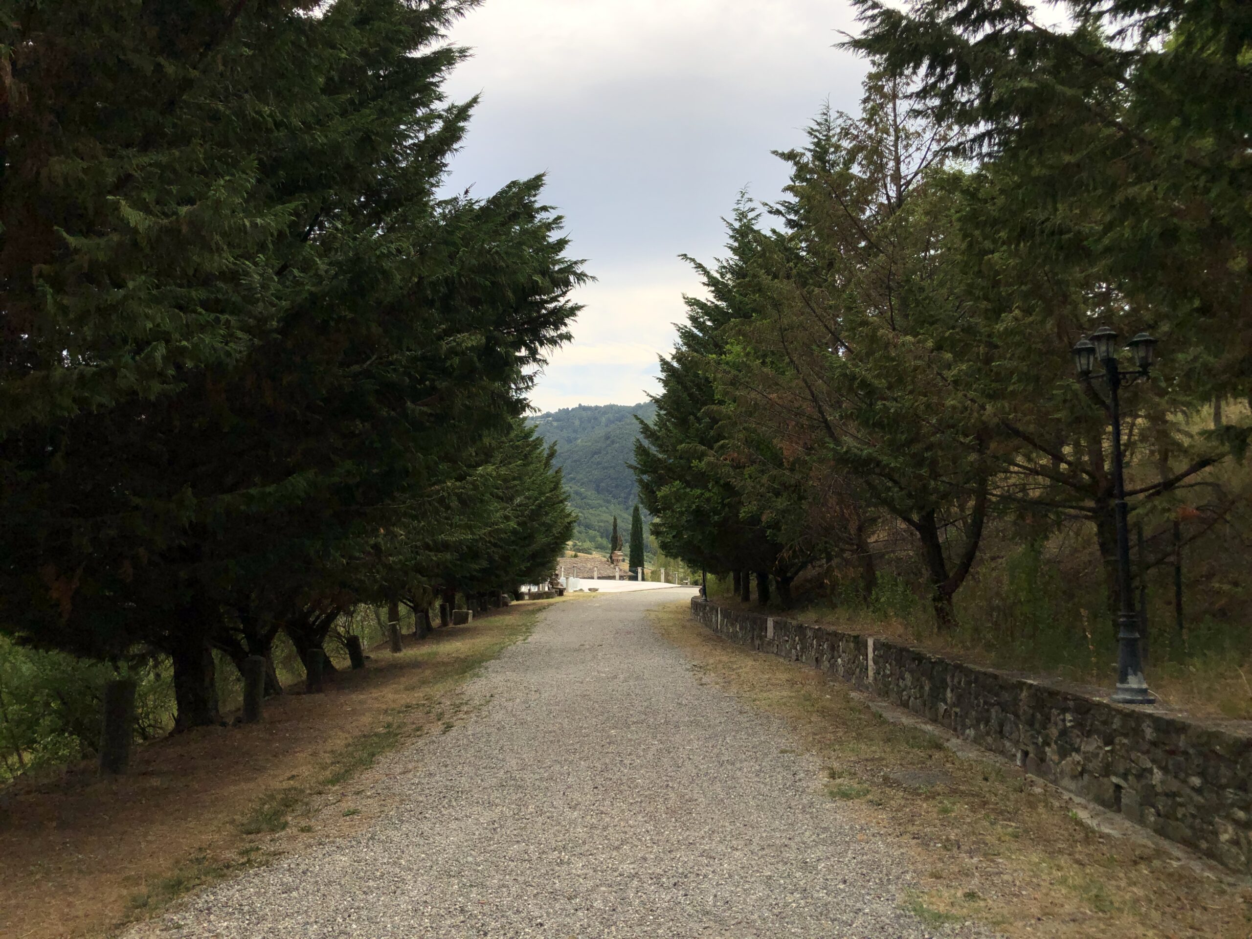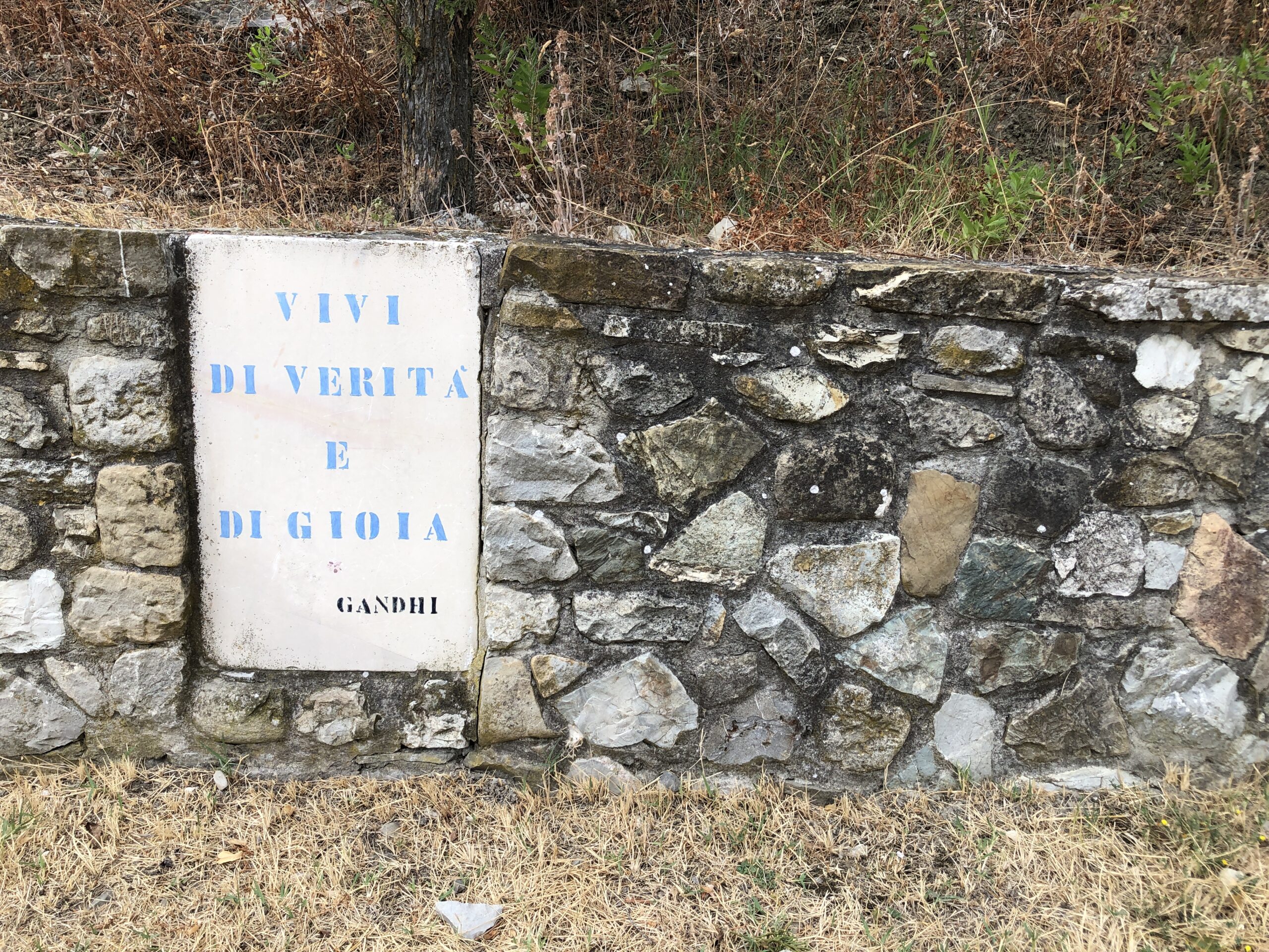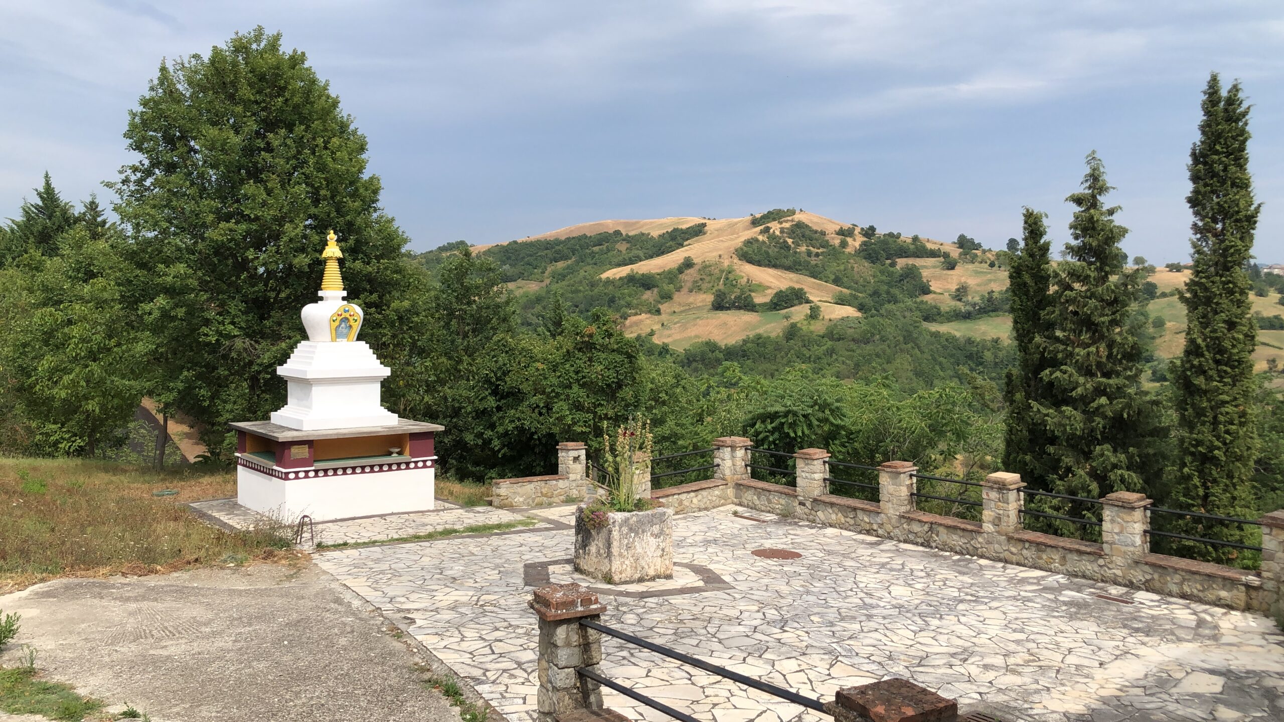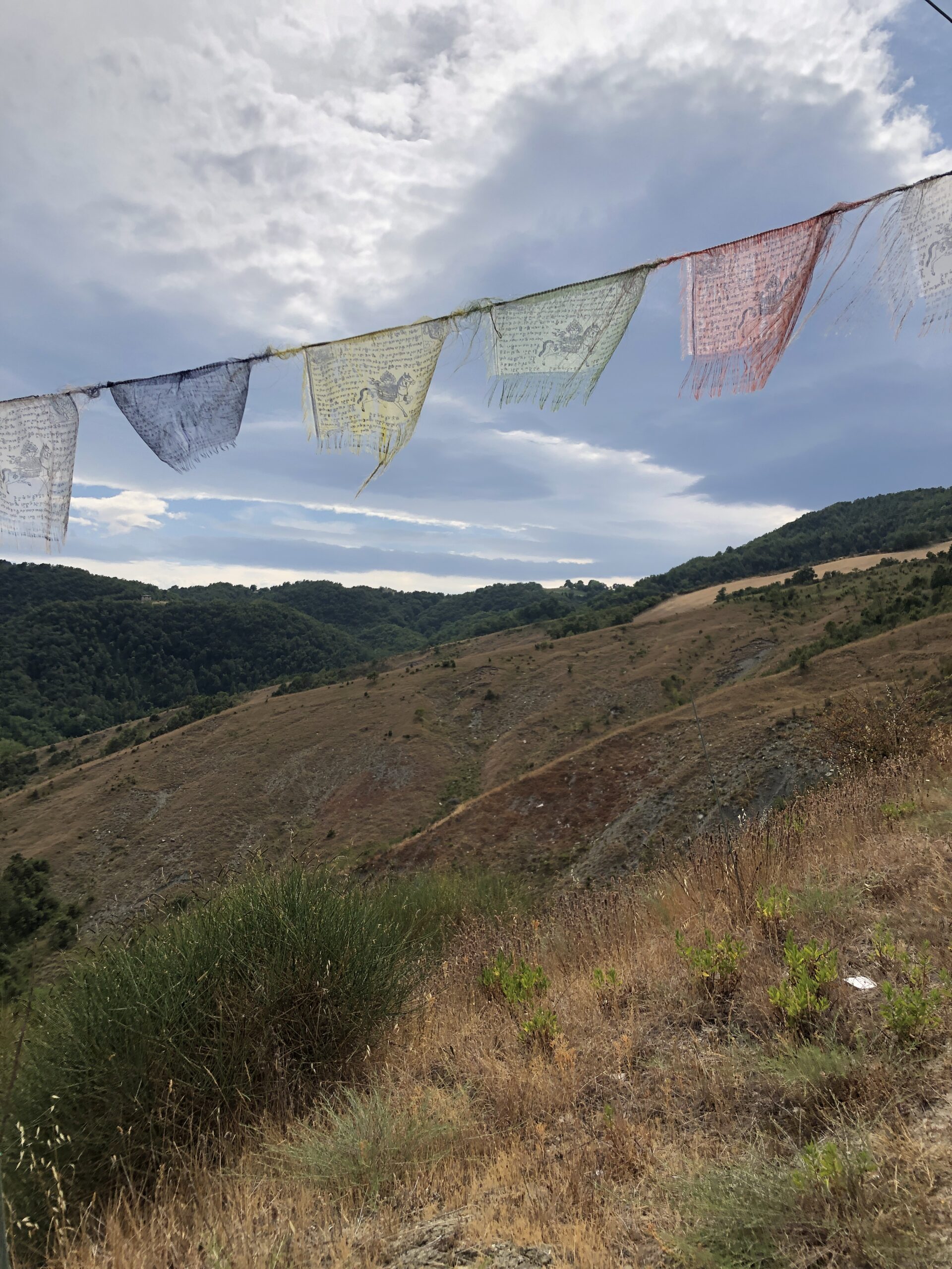 Sono da sola in questa intima piazza dal sapore rustico (nonostante la grande scacchiera a terra). Probabilmente in Tibet ci sarà lo stesso dolce silenzio, gli stessi disegni sacri dai colori accesi, la stessa cura meticolosa per la natura circostante.