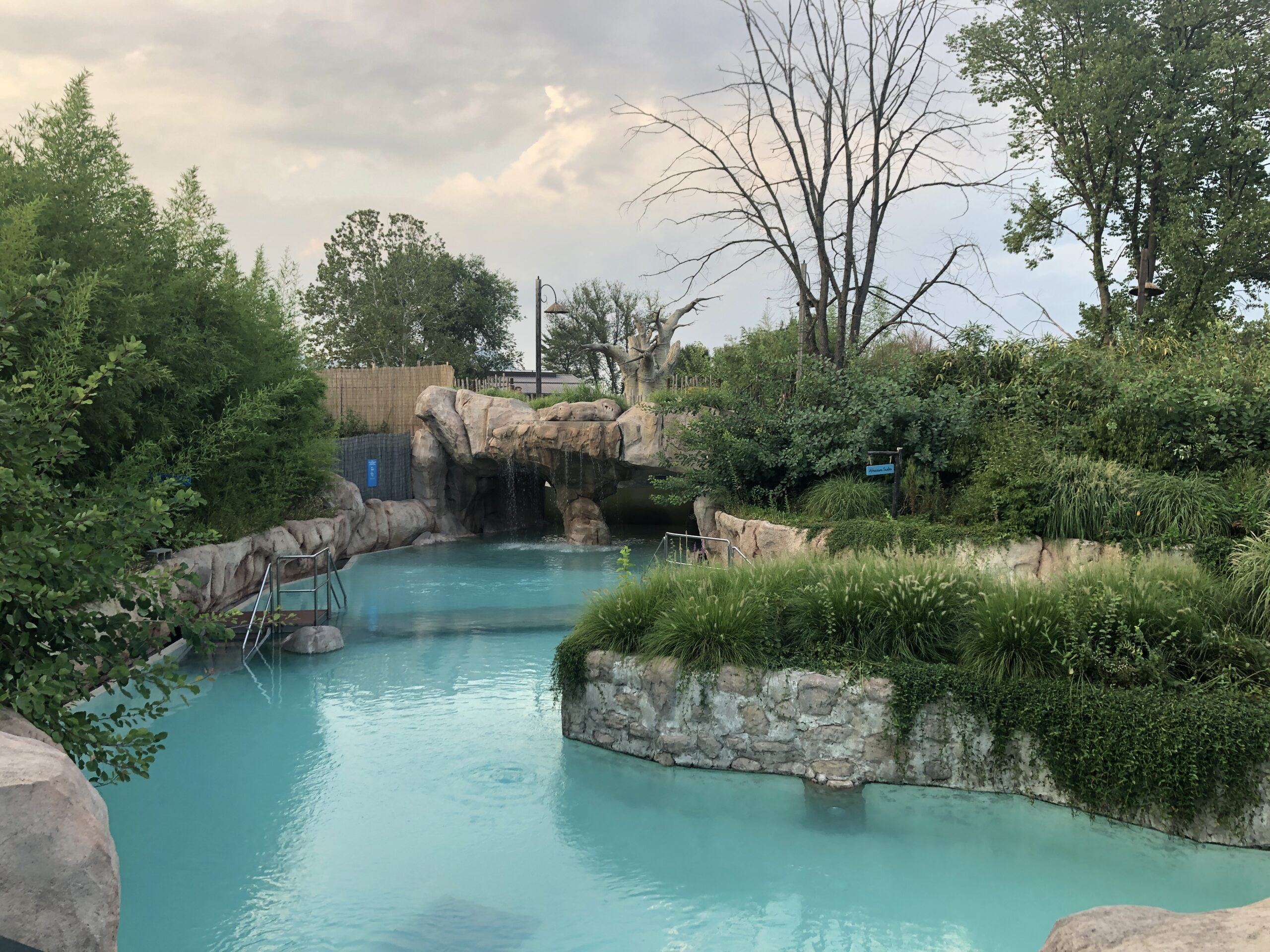 Manca il ciuffo alla Ace Ventura ma qualche smorfia riesco a farla anch’io, mi muovo frenetica tra un recinto e l’altro cercando di vedere il maggior numero di amici animali. Alcuni dormono su alti rami, altri sono nascosti in buche nel terreno e ce n’è qualcuno che nuota in torbide acque. Ogni tanto vengo superata da qualche persona in costume da bagno che si gode il caldo estivo. C’è una piscina di un’azzurro innaturale all’interno della quale puoi nuotare accanto ai pinguini, non proprio accanto ecco, diciamo difronte, grazie ad un plexiglas che separa le due vasche: una per gli umani e una per gli uccelli in frac che non sanno più volare. Tutt’intorno spiagge bianche ed ombrelloni di paglia.